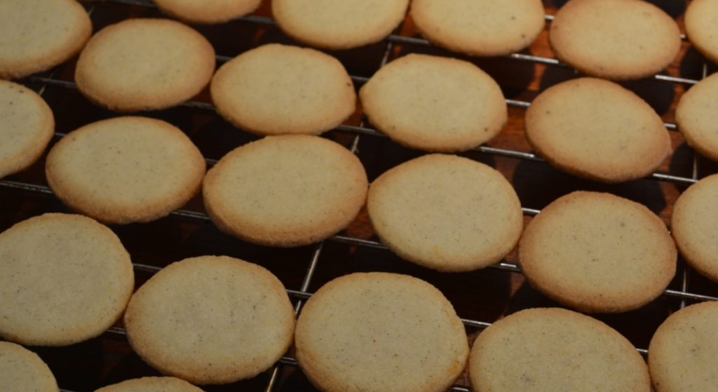 - Kagerne tages ud af ovnen og køles af på kagerist. Kagerne er bløde når de lige kommer ud af ovnen, men de bliver sprøde når de er kølet helt af.
